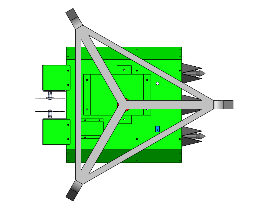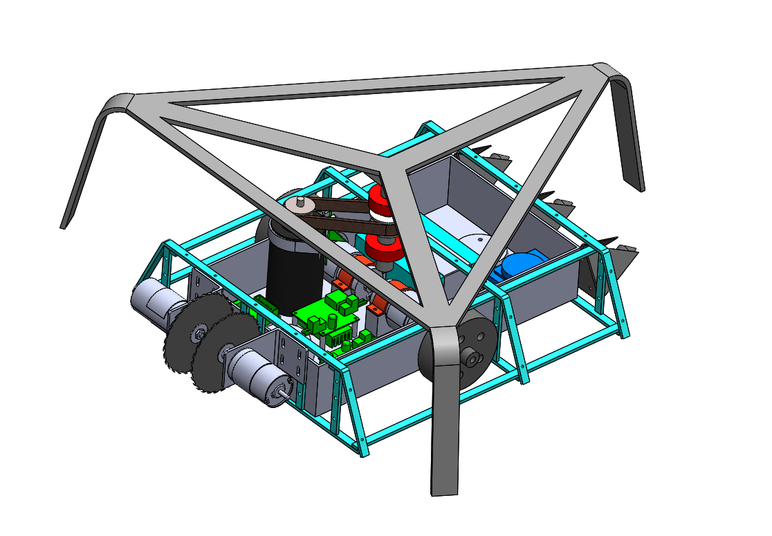 該模型是一款螺旋槳格斗機器人,整體采用框架結構,拼裝而成。該機器人通過頂部高速旋轉的螺旋槳對敵人進行攻擊和防御。前部裝備了2個高速旋轉的鋸片,作為備用武器,對敵人進行切割。
