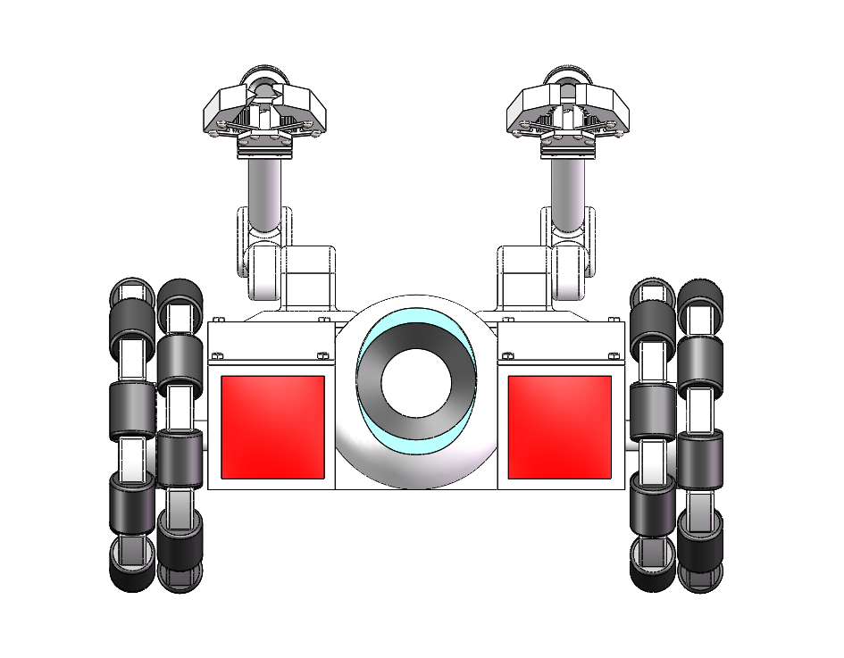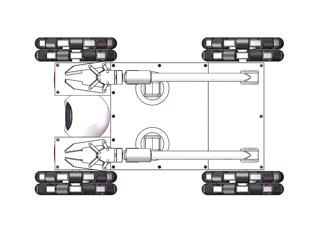 該模型是一款車輪式機械手機器人。車體上裝有獨立的攝像頭,可上下擺動,用于行駛過程中,觀察路況。車體上安裝兩個機械臂,分別裝上剪鉗和夾鉗。剪鉗可以剪斷電線等物件、夾鉗可以挾持物件,兩機械臂配合工作可拆裝炸彈。