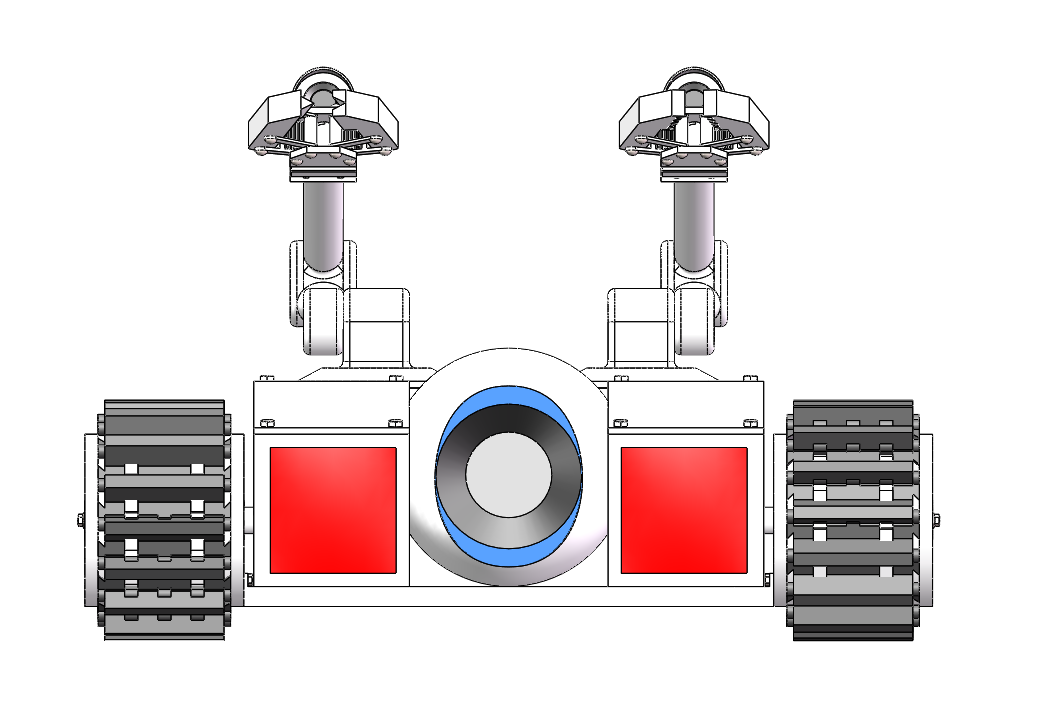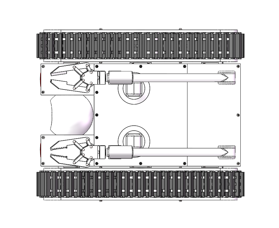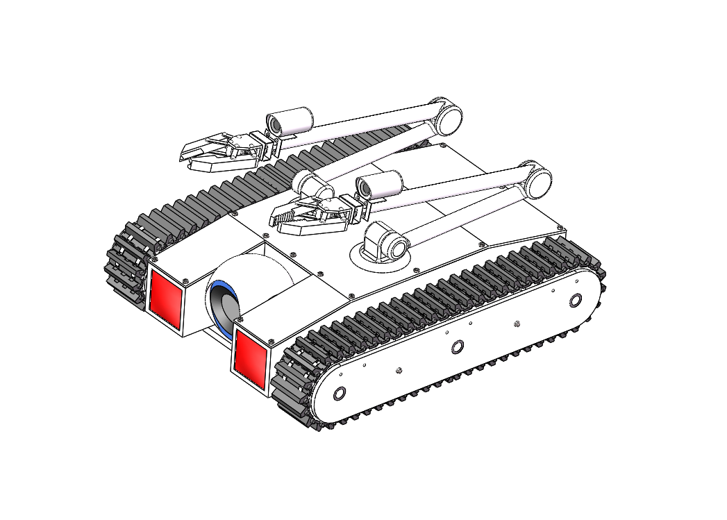該模型是一款多功能機(jī)械手防爆機(jī)器人。車體上裝有獨(dú)立的攝像頭,可上下擺動(dòng),用于行駛過(guò)程中,觀察路況。車體上安裝兩個(gè)機(jī)械臂,分別裝上剪鉗和夾鉗。剪鉗可以剪斷電線等物件、夾鉗可以挾持物件,兩機(jī)械臂配合工作可拆裝炸彈。