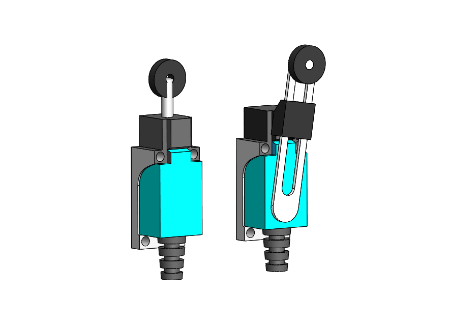 該模型是兩款行程開關。行程開關又稱限位開關,是一種用于檢測機械運動位置并控制電路通斷的自動化控制元件。行程開關廣泛應用于工業機械、自動化設備、電梯、輸送線等場景,用于限制運動部件的行程、定位或安全保護,具有結構緊湊、動作可靠、耐磨損等特點。